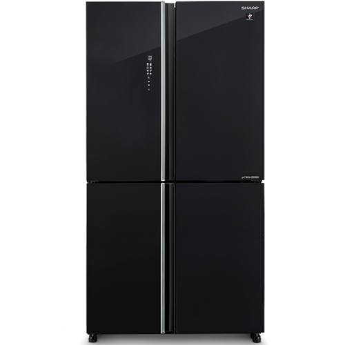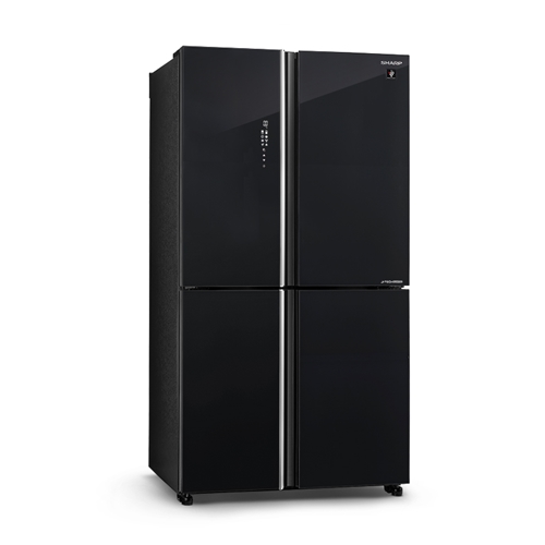 - מקרר 4 דלתות מקפיא תחתון בנפח 525 ל' דגם SHARP SJ-8590-BK דלת זכוכית שחורה