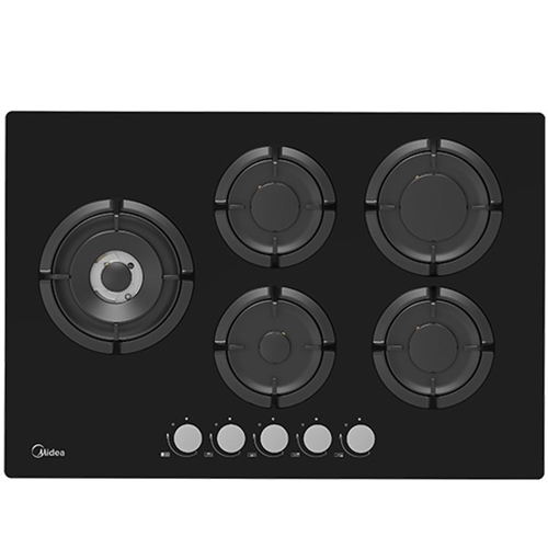 - כיריים גז 5 להבות דגם Midea 75GH503 מידאה בגימור זכוכית שחורה מחוסמת