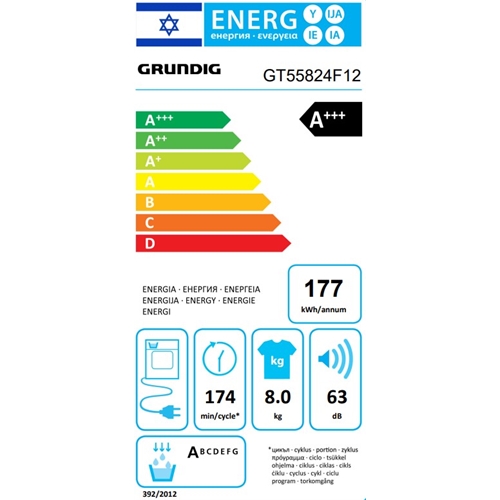 מייבש כביסה 8 ק"ג Heat Pump דגם GRUNDIG GT55824F12 - מידע נוסף