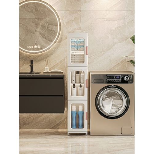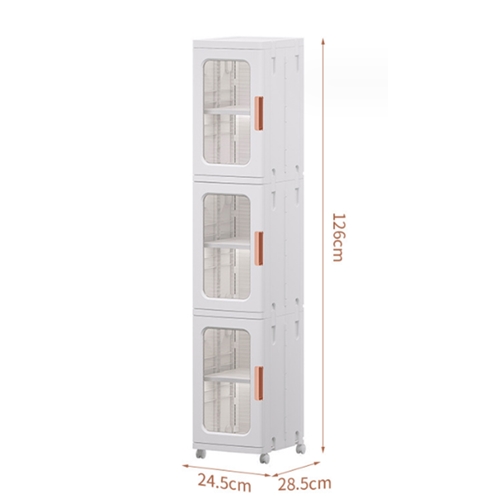 ארונית אחסון אופנתית בצבע לבן עם ידיות רוז-גולד.