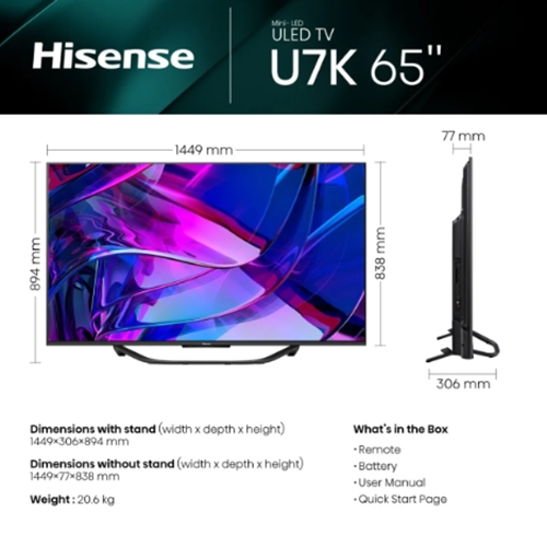 טלוויזיה חכמה HISENSE 65" ULED Mini-Led 4K 65U7KQ - מידע נוסף