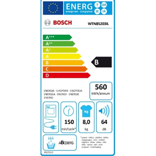 מייבש כביסה קונדסור 8 ק"ג דגם WTN85203IL בוש BOSCH - מידע נוסף