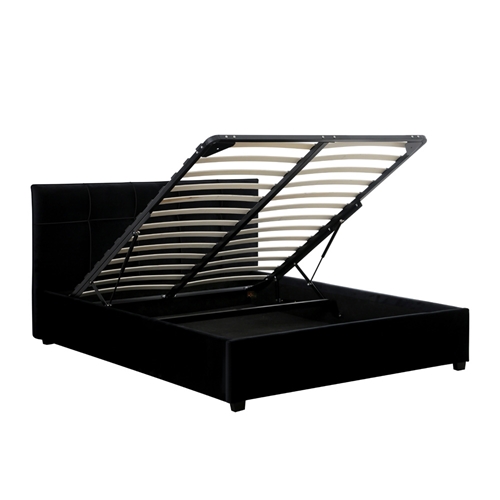 ארגז מצעים מובנה, מרווח, מתרומם מחזית המיטה, עם מנגנוני בוכנות להרמה קלה ונוחה כמוצג בתצלום.