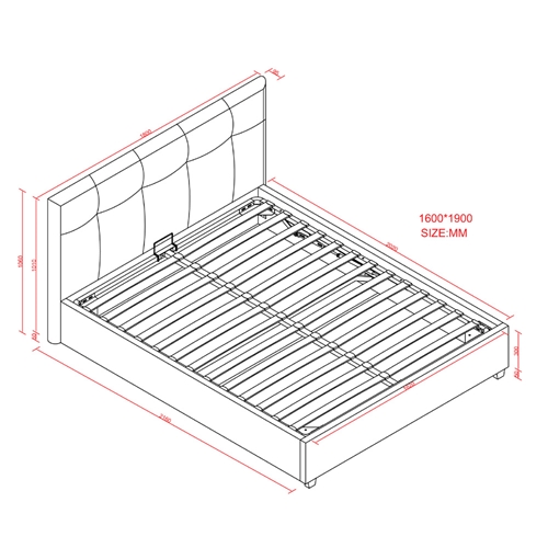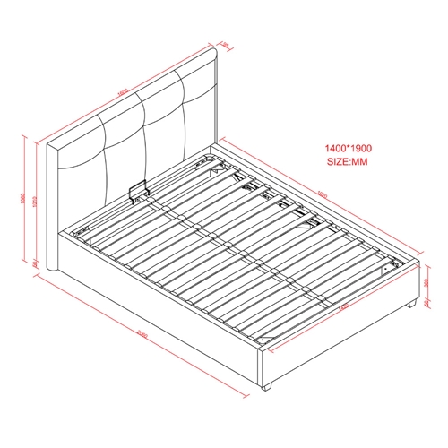 המיטה מתאימה למזרן 140/190 או 160/200 ס"מ (בתוספת תשלום)