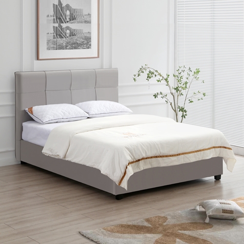 מיטה זוגית מרופדת עם בסיס עץ מלא בעיצוב מודרני
