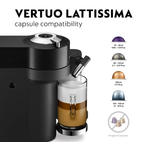 - מכונת קפה NESPRESSO ורטו לאטיסימה דגם GDV5-IL-WH-NE נספרסו בצבע שחור