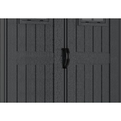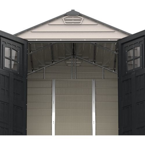 מחסן הפונקציונלי הזה בחצר האחורית מגיע עם דלתות כפולות רחבות שגדולות מספיק כדי לאפשר לייעל את השימוש המלא בנפח האחסון.