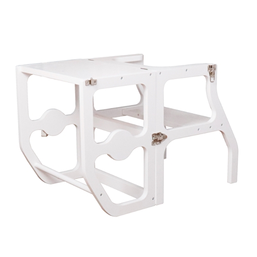 מגדל למידה הופך לשולחן וכסא מעץ בצבע לבן