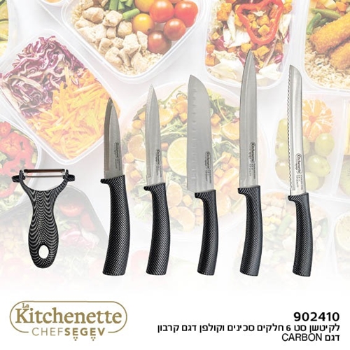 אצלנו, קניות באינטרנט של סט 6 חלקים סכינים וקולפן דגם קרבון CARBON 129 שוות לך פי אלף!