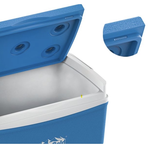 צידנית עם ידיות צד לאבטחת נעילת המכסה ומחזיקי כוסות על המכסה