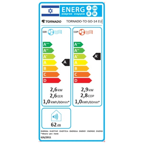 מזגן נייד דגם TO GO 14 EU טורנדו TORNADO - מידע נוסף