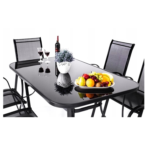 הסט כולל שולחן זכוכית שחורה מראה וכולל 6 כיסאות תואמים