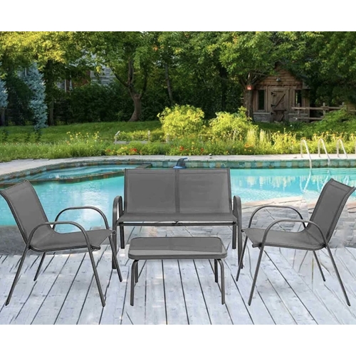 סט ריהוט גן עם מסגרת פלדה ורשת - 4 חלקים