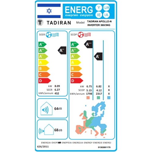 מזגן עילי TADIRAN APOLLO INV N-360NG תדיראן - מידע נוסף