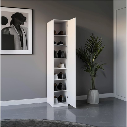 ארון נעליים גבוה הכולל 7 מדפים המספקים שפע של מקום אחסון.