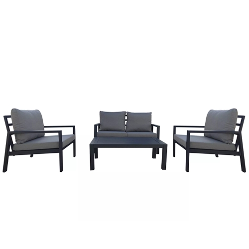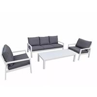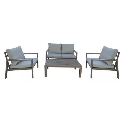מערכת ישיבה לגינה או למרפסת המורכב מארבעה חלקים, עשוי משלדת אלומיניום איכותית ועמידה במיוחד לתנאי חוץ.