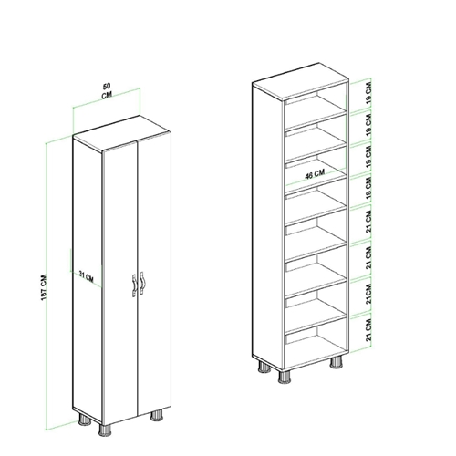 ארון האחסון המורכב משני דלתות 7 מדפים הוא פתרון יעיל ומרווח לאחסון רבים מחוץ לו,