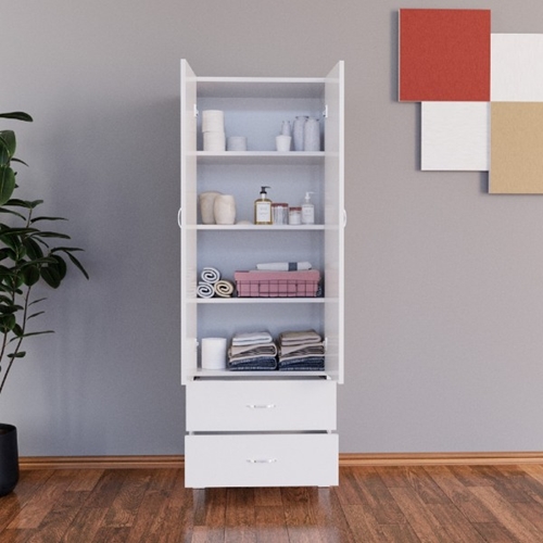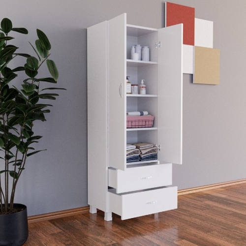 הארון מכיל מדפים רחבים ונוחים לאחסון ומגירות נשלפות לאחסון פריטים קטנים ופרטיים.