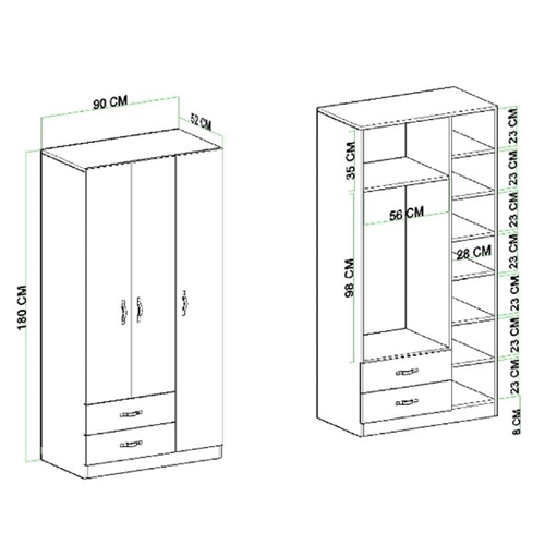 ארון בגדים 3 דלתות עם 2 מגירות: