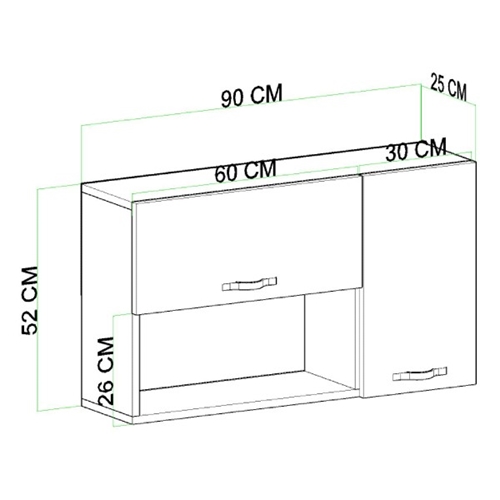 הספריה התלויה מצוידת במדף פתוח ובארון סגור עם דלת, תומכת באחסון נוח ומסודר של ספרים, מסמכים וחפצים דקורטיביים.