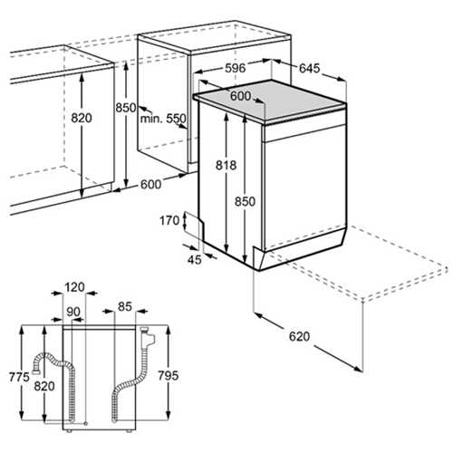 זרוע התזת לווין אמצעית וזרוע שלישית בתקרת המדיח המבטיחים ניקוי ללא דופי בכל עומס עם הטענה ל- 15 מערכות כלים ותאורה פנימית