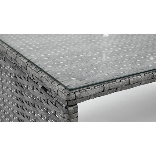 החלק העליון של השולחן עשוי זכוכית מחוסמת.
