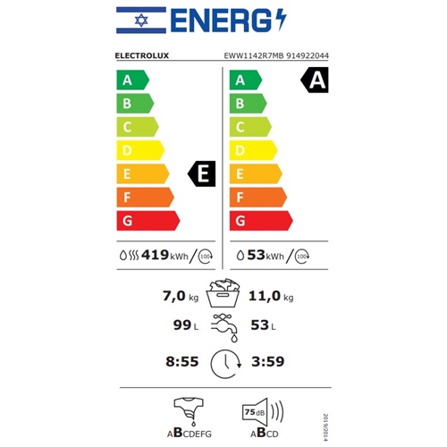 מכונת כביסה משולבת מייבש 11\7 ק"ג דגם Electrolux E - מידע נוסף