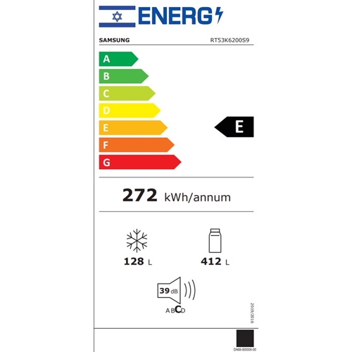 דירוג וצריכת אנרגיה שנתית E לפי תקן חדש : 272 קו"ט