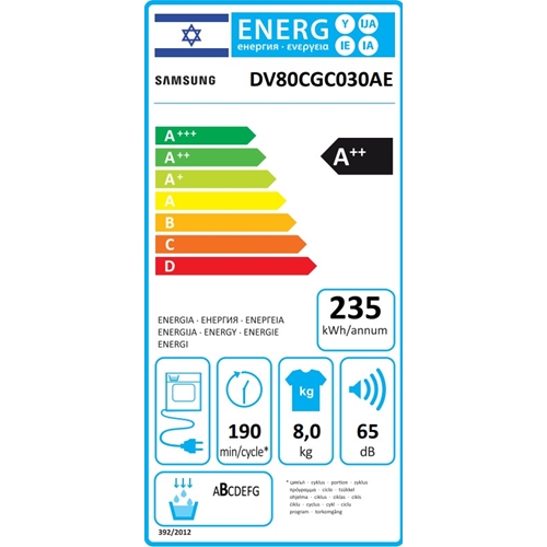 מייבש כביסה 8 ק"ג Samsung DV80CGC030AE Heat Pump - מידע נוסף