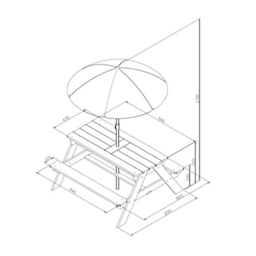 שולחן ספסל פיקניק לילדים עם שמשיה דגם PLAY - מידע נוסף