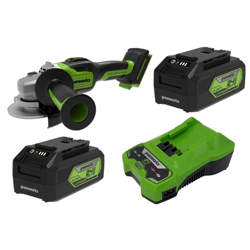 - משחזת זווית "5 (125 מ"מ) Brushless עם 2 סוללות 5.0Ah + מטען מהיר Greenworks