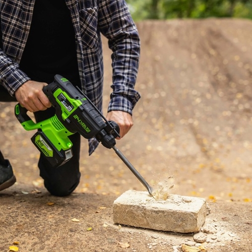 - פטישון 24 מ"מ 4 מצבי עבודה Brushless 24V ללא סוללה ומטען Greenworks