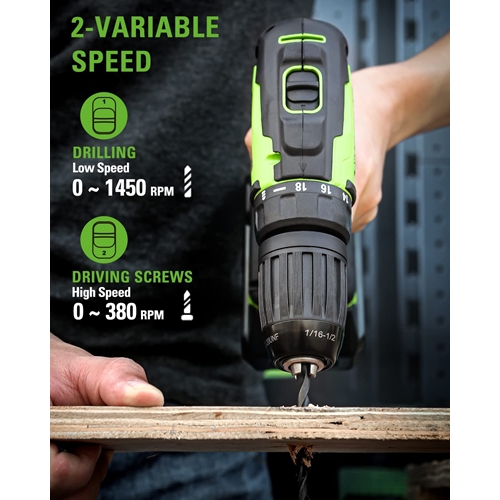 גיר 18+1 ושתי מהירויות משתנות מאפשר שליטה מדויקת בקידוח חורים והידוק במגוון חומרים.