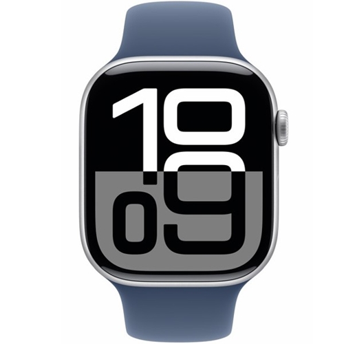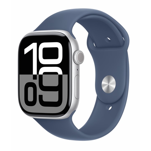 - שעון חכם אפל Apple Watch Series 10 GPS 46mm Silver Aluminium Case with Denim Sport Band S/M