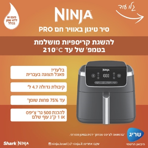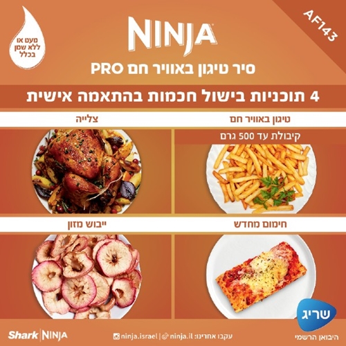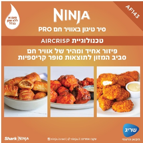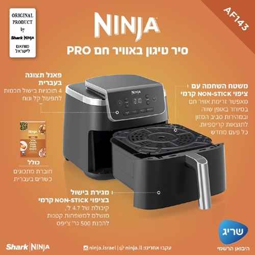 אצלנו, קניות באינטרנט של סיר טיגון באוויר חם 4.7 ליטר דגם NINJA AF143 שוות לך פי אלף!
