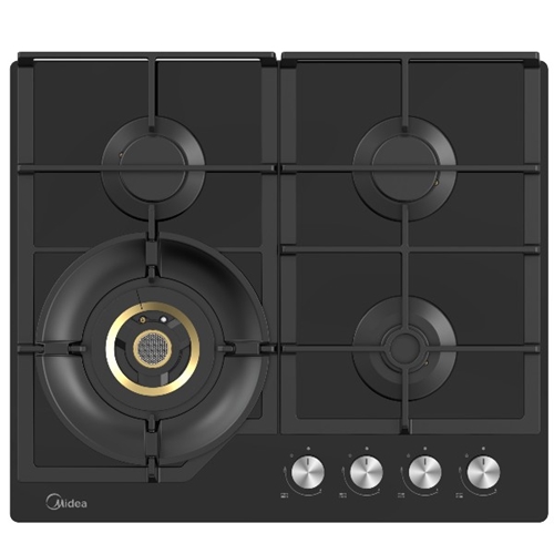 - כיריים גז 60 ס"מ דגם Midea MG60GH096KT6B-IR מידאה זכוכית שחורה