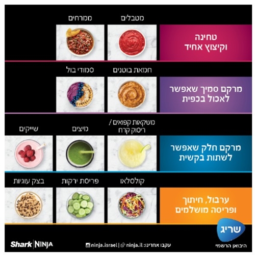 מעבד מזון משולב בלנדר דגם TB403 נינג'ה NINJA - מידע נוסף
