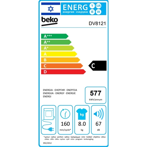 מייבש כביסה צינור פליטה 8 ק"ג דגם DV8121 בקו BEKO - מידע נוסף
