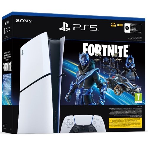 *החבילה מגיעה עם קונסולת PS5 SLIM פלוס 8 פריטים קוסמטיים (בעלי ערך משוער של 5000V-Bucks) ו1000 V-Bucks לשימוש בFortnite