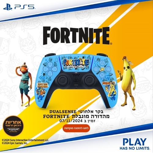 הצטרפו לאקשן עם בקר אלחוטי DualSense מהדורה מוגבלת של Fortnite!