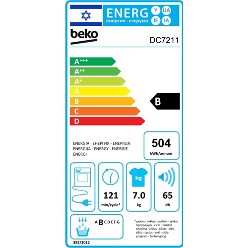 מייבש כביסה 7 ק"ג דגם DC7211 בקו Beko בקו - מידע נוסף