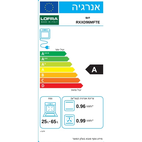תנור משולב כיריים 65 ליטר דו תאי LOFRA RBPD96MFTE - מידע נוסף