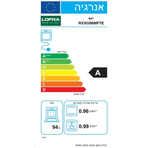 תנור משולב כיריים 90 ס"מ דגם RBPG96MFT לופרה LOFRA - מידע נוסף