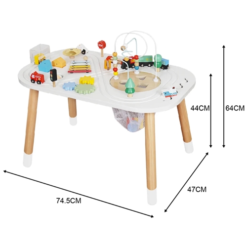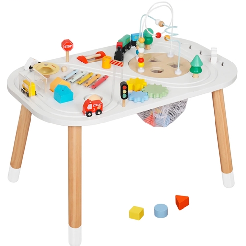 השולחן מאפשר לקטנטנים להתנסות במגוון רחב של דברים מעניינים בשולחן אחד