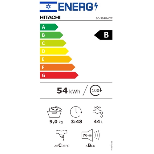 מכונת כביסה 9 ק"ג דגם HITACHI BD-904HVOW לבן - מידע נוסף