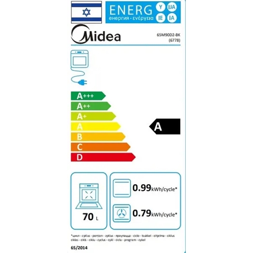תנור אפייה בנוי 70 ליטר Midea 65M90D2BK שחורתנור אפייה בנוי 70 ליטר Midea 65M90D2BK שחור דגם: 65M90D2-BK - מידע נוסף