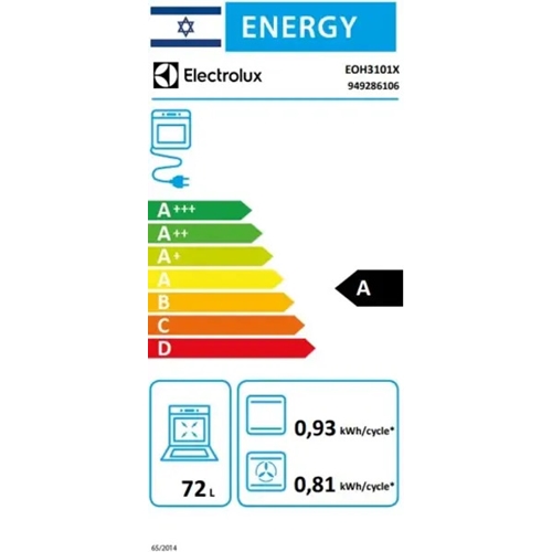 תנור בנוי 72 ליטר דגם Electrolux EOH3101X נירוסטה - מידע נוסף
