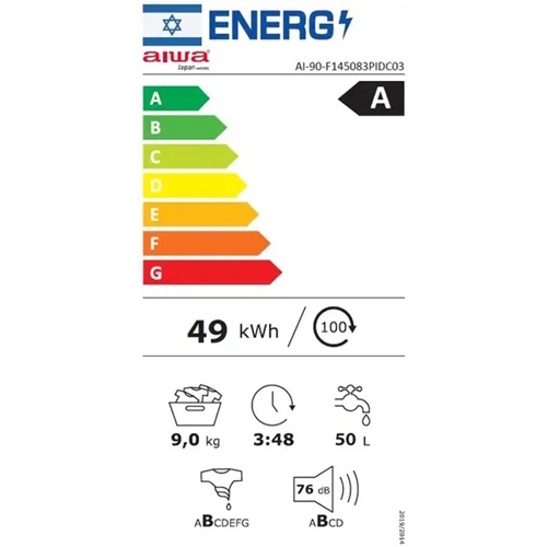 מכונת כביסה 9 ק"ג AIWA AI-90-F145083PIDC03-S כסוף - מידע נוסף