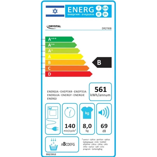 מייבש כביסה קונדנסור 8 ק"ג דגם CRYSTAL DR2780B - מידע נוסף