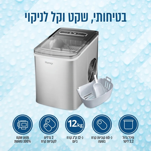 מכונת קרח 2.2 ליטר דגם HIM-360 הומקס HOMEX - מידע נוסף